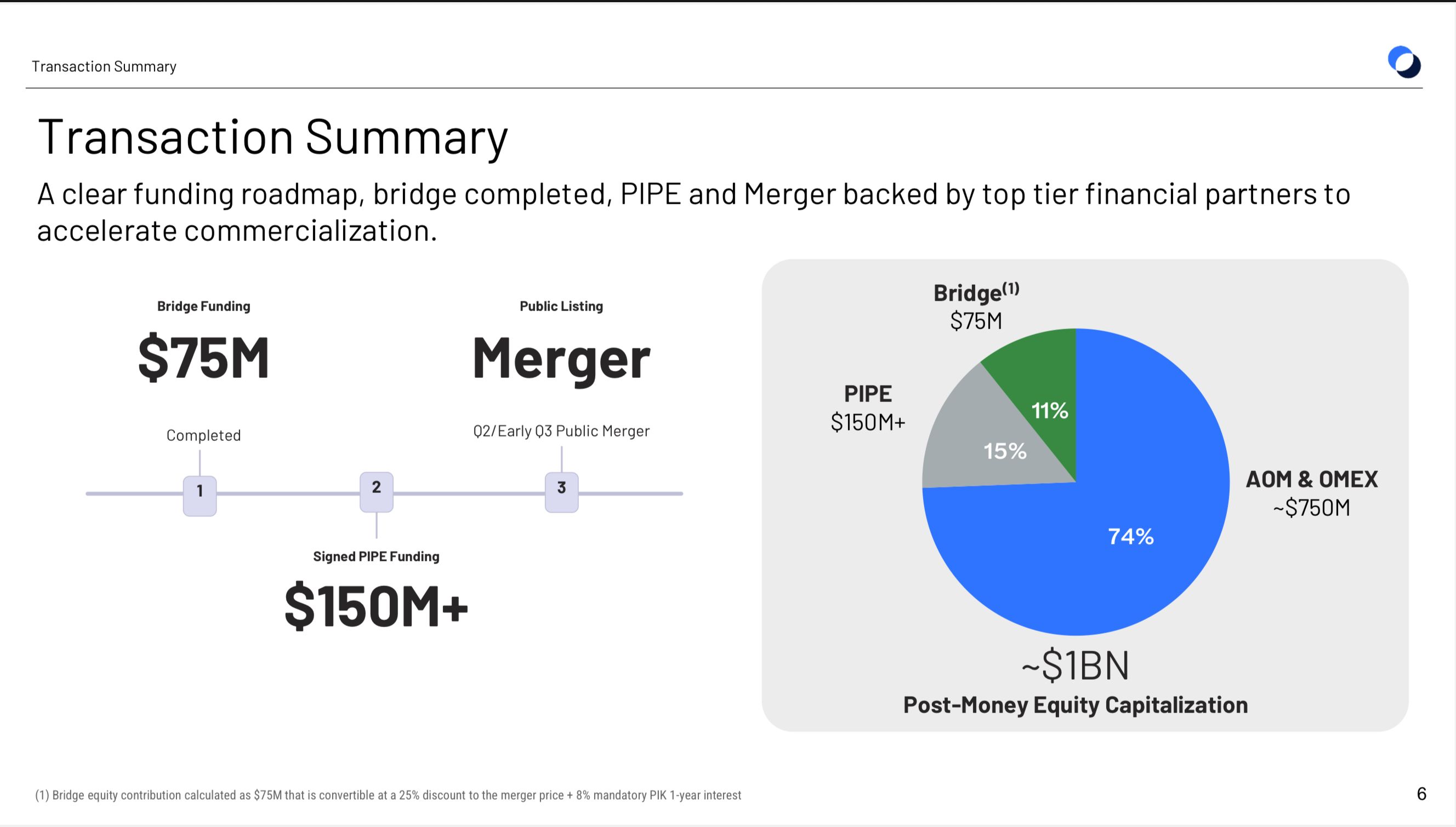 The structure is a reverse takeover: AOM holders control the combined company, Odyssey provides the Nasdaq listing, and the legacy Mexican phosphate business spins into a liquidating trust for OMEX shareholders. Financing includes a $75.6 million convertible bridge, a $156 million PIPE, and up to $35 million in additional notes.