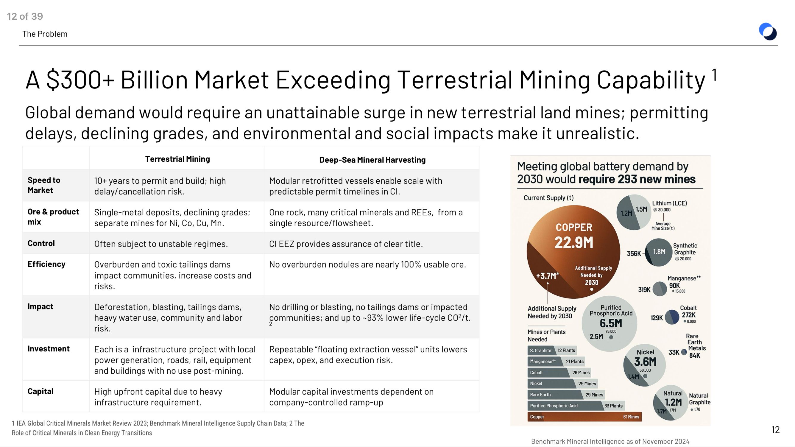 American Ocean Minerals announced it would merge with Odyssey Marine Exploration (NASDAQ: OMEX) in an all-stock deal valuing the combined entity at ~$1 billion. The mandate: vacuum polymetallic nodules — clumps of nickel, cobalt, copper and manganese — off the bottom of the Pacific Ocean.